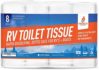 Firebelly Outfitters RV Toilet Paper, Septic Tank Safe - 8 Rolls, 2-Ply 500 Sheets on Amazon