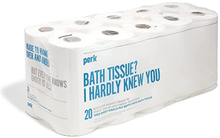Perk Septic Safe 1-Ply Toilet Paper, White, 1000 Sheets/Roll, 20 Rolls/Pack on Amazon